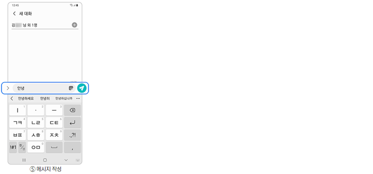 안드로이드 14, 13, 12 OS에서는 메시지 작성으로 이동해 단체문자표시를 클릭하면 여러 명의 수신인에게 단체문자, 공지 메시지를 보낼 수 있습니다.