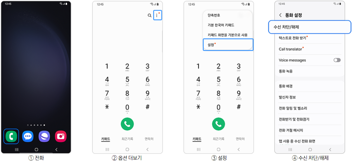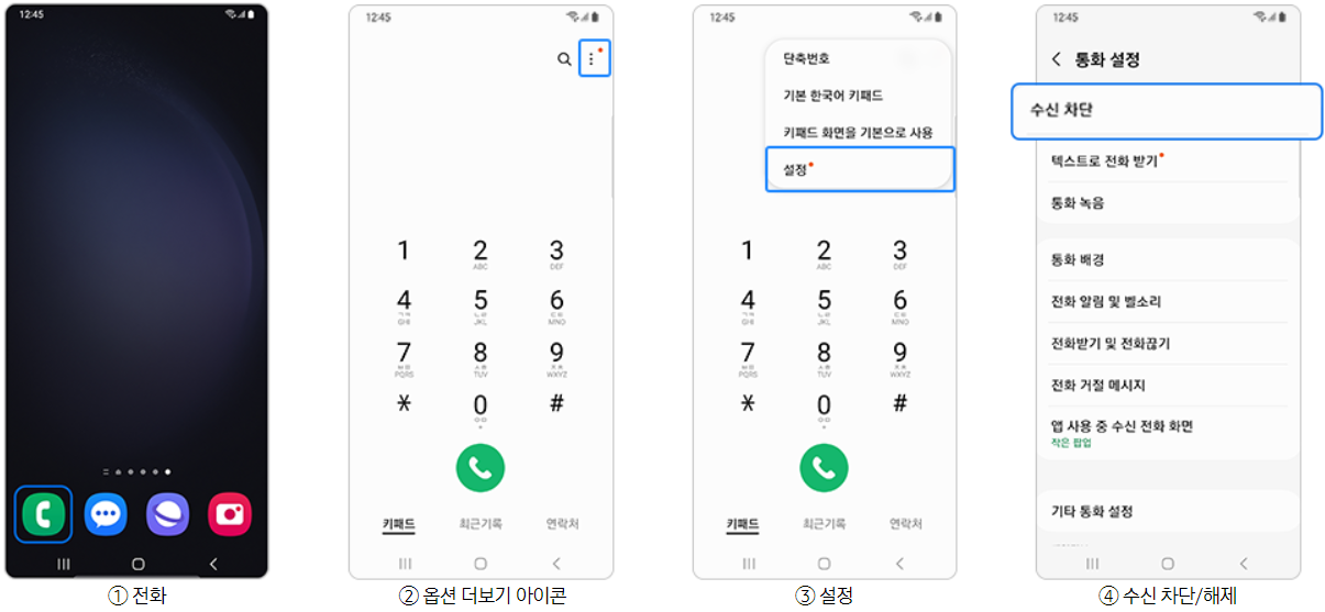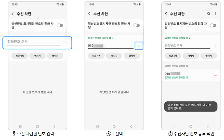 갤럭시 수신차단 등록 방법