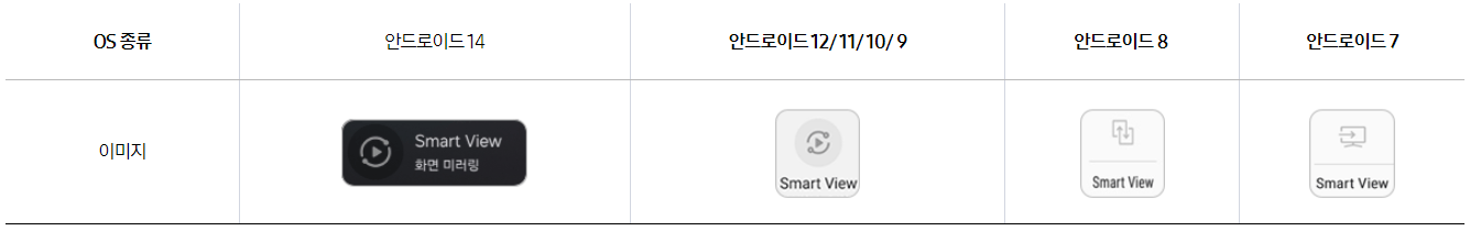 그럼, 안드로이드 OS별로 스마트 뷰를 사용해 스크린 미러링을 연결하는 방법에 대해 알아보겠습니다.