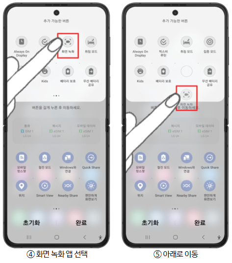 화면녹화를 하고 싶은데, 화면녹화 어플이 보이지 않는경우 휴대폰 세팅을 해주셔야 합니다.