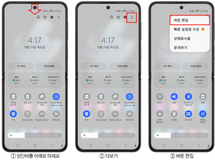 2. '버튼 편집'을 선택해 '화면녹화'앱을 선택합니다.