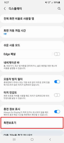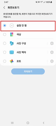 설정 > 디스플레이 > 화면보호기 > 설정 안 함