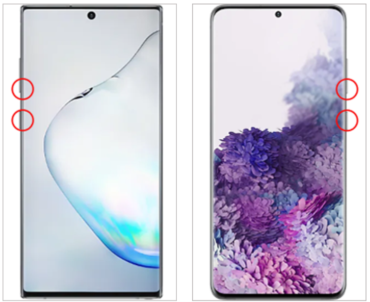 전원이 자동으로 재부팅될 때까지 전원(측면) 버튼과 음량(하) 버튼을 '동시' 에 7초 이상 눌러 다시 시작하세요