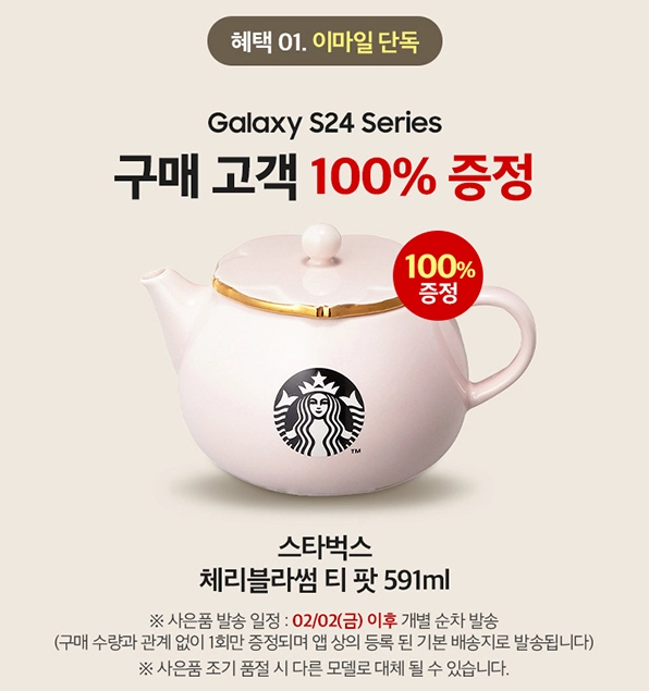 스타벅스 굿즈 핑크색 체리블라썸 티팟도 100% 증정이에요. 선물받으면 기분 좋은 아이템인데, 선물용이나 현금화 하기도 좋아보입니다.