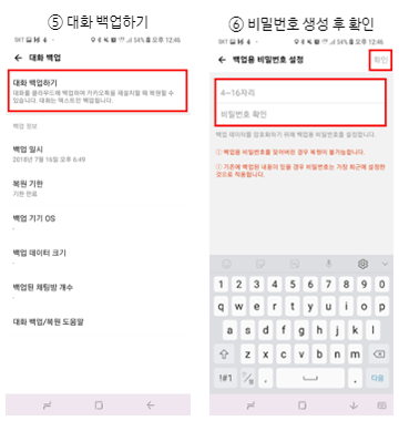 그리고 대화 내용 백업 시 생성한 비밀번호는 '찾기 기능'을 지원하지 않으니 꼭 기억하고 계시거나 따로 적어두시는 것을 추천드립니다.