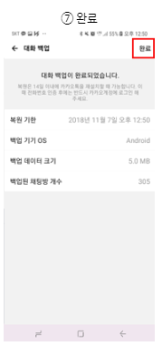 그리고, 대화 내용 백업이 휴대폰 내장 메모리에 저장되었을까 봐 걱정하시는 경우가 있는데, 휴대폰의 내장칩에 따로 저장되는 것이 아니므로 걱정하지 않으셔도 됩니다.