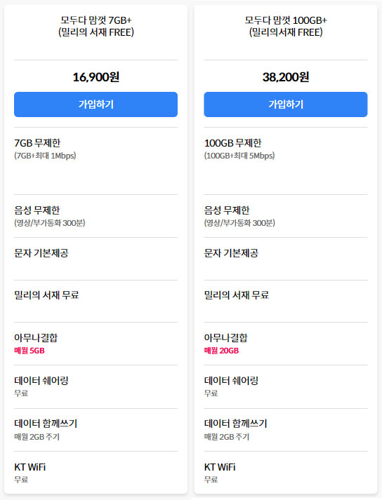 kt-m모바일-밀리의-서재-요금제-12gb-120gb-무제한-데이터-가격