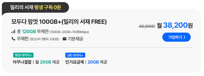 120GB 무제한 밀리의 서재 무료 요금제 바로가기